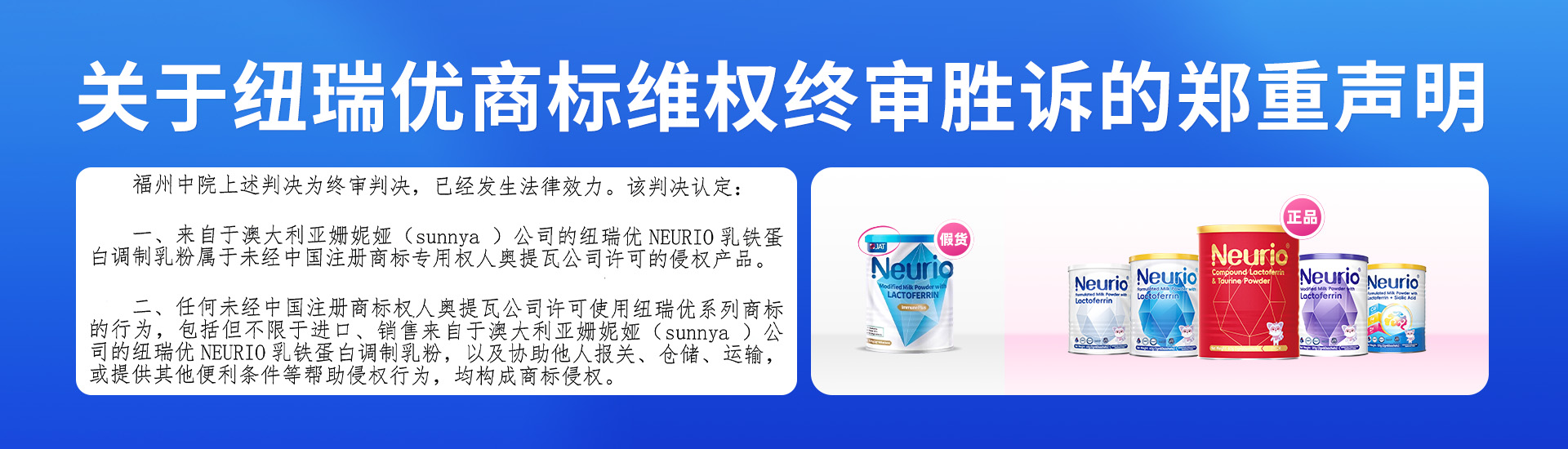 Neurio (中文品牌名:紐瑞優(yōu))意即 “New for You(創(chuàng)新為你)” ,自2011年品牌創(chuàng)建以來, 秉承“創(chuàng)新為你·健康至上” 的理念,讓健康伴隨生活。 紐瑞優(yōu)Neurio產(chǎn)品從國際引入中國,快速落地生根,并在中國實現(xiàn)品牌騰飛!紐瑞優(yōu)持續(xù)努力將自己打造為一個國際知名品牌,前期主要以澳新產(chǎn)品為主,現(xiàn)已轉(zhuǎn)型為以國際產(chǎn)品為主,并堅定不移深耕中國本土化產(chǎn)品,擴大國際營銷, 實現(xiàn)從國際引進中國,再從中國走向國際,讓紐瑞優(yōu)品牌再上一個新的臺階! 自2015年,紐瑞優(yōu)團隊經(jīng)過不懈努力成功研發(fā)紐瑞優(yōu)乳鐵蛋白系列調(diào)制乳粉,奉獻給熱愛健康的人們。 紐瑞優(yōu)團隊專注大健康理念,包括孕產(chǎn)婦與胎兒健康,兒童青少年的健康成長以及中老年人的健康營養(yǎng)需求,不斷推陳出新,為大健康理念貢獻自己的一份力量。 紐瑞優(yōu)永不止步,不斷探索和追尋更新的健康理念,不斷自我超越追求更高的目標(biāo), 不斷努力研發(fā)生產(chǎn)符合市場需求的質(zhì)優(yōu)價美產(chǎn)品,滿足人們對健康和高品質(zhì)生活的追求!